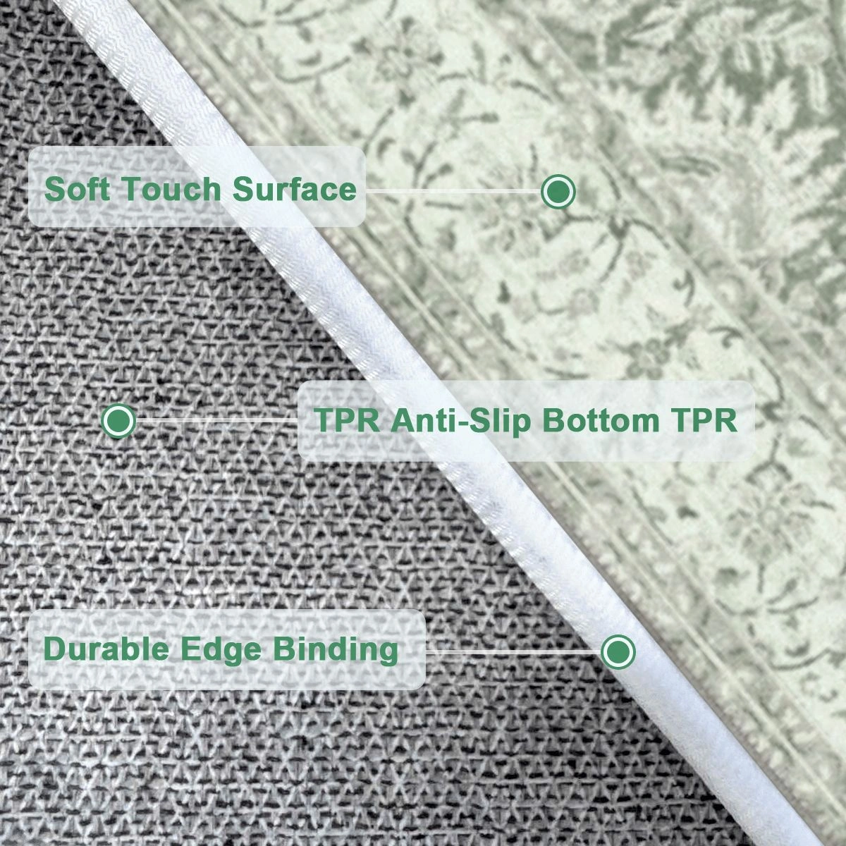 Unwind with Every Step. Go ahead, live a little. Our family-friendly washable rugs combine an incredibly soft texture with long-lasting, recycled material. The strong nonslip grip means safety for busy feet, leaving you free to simply relax and enjoy the comfort zone.