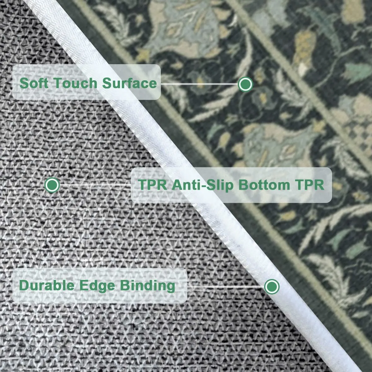 • Product Performance: The carpet is made of soft low-pile fabric, which is comfortable to the feet, thick and durable, not too bulky, and does not shed. The back of the rug is designed with non-slip particles, so that the rug will not slide easily, which is safer and more reliable. High-quality craftsmanship and exquisite personalized printing can enhance the exquisiteness of home decor.